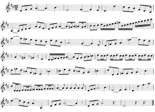 L'esercizio è in 12/8, è scritto in Re maggiore, con qualche sconfinamento dall'estensione alla quale siamo abituati. Ai fini del solfeggio ritmico non ci sono difficoltà. Per chi volesse tentare di solfeggiare l'esercizio leggendo il nome delle note, l'esercizio potrà rappresentare un'occasione per ripassare le posizioni delle note ed aggiungerne qualcuna in più.