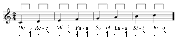 La prima parte di ogni nota rappresenta il battere, la seconda il levare. Per facilitare questo tipo di lettura ci si avvale di alcuni movimenti della mano, che hanno lo scopo di rendere più chiare le suddivisioni fra battere e levare.