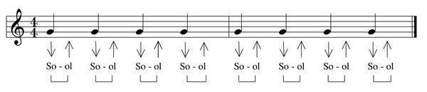Dovendo leggere il Sol, come quello illustrato nell'articolo dedicato al quarto, è necessario dividerlo mentalmente in due parti, che in musica sono definite battere e levare.